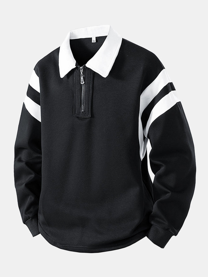 Color Block Zipper Polo Sweatshirt