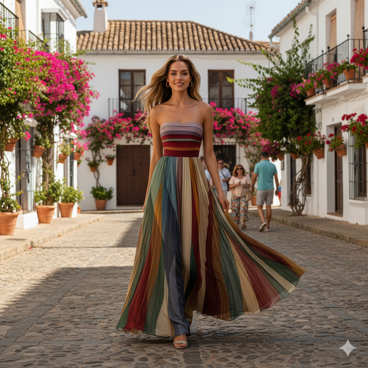 Cette robe à couper le souffle est conçue pour faire une impression inoubliable, alliant la sophistication à un sentiment de mouvement sans effort.