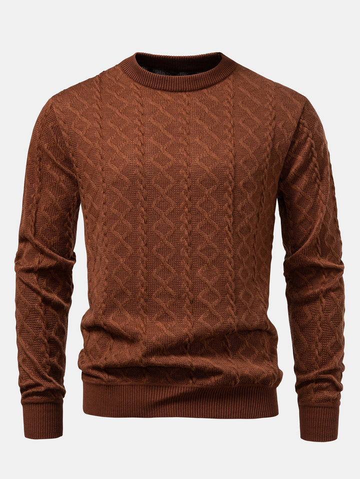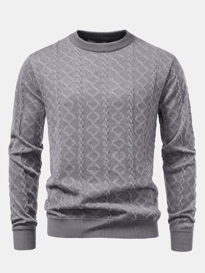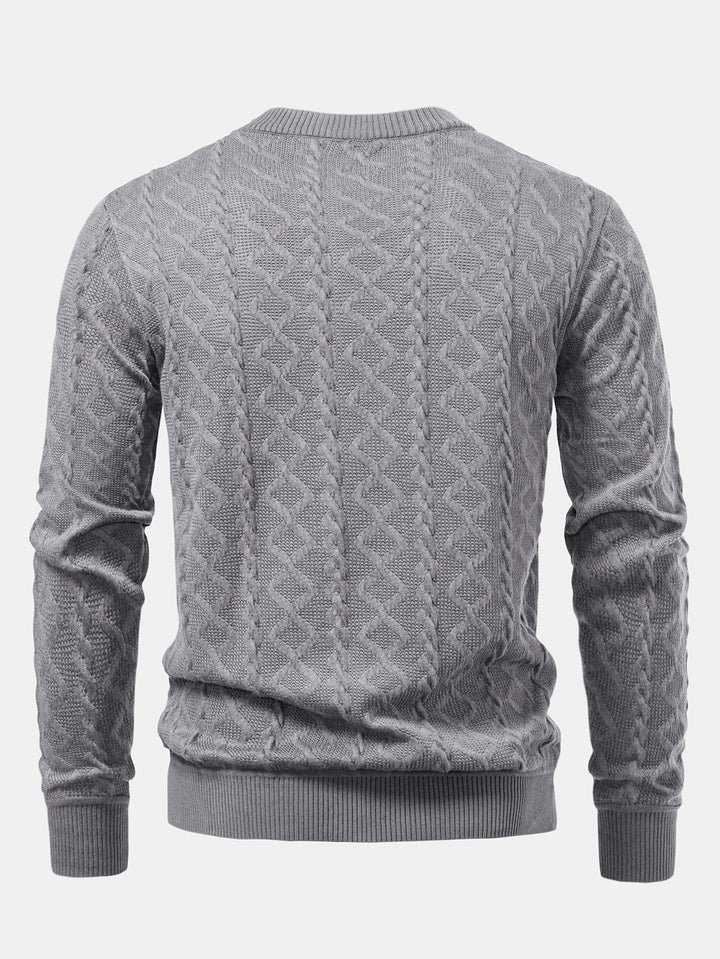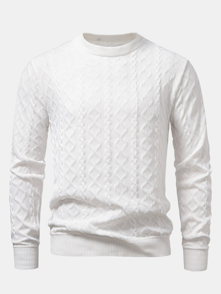 Featuring a unique geometric jacquard pattern, this sweater blends contemporary design with timeless comfort. The crew neck offers a classic silhouette, while the soft knit fabric provides warmth and breathability, perfect for everyday wear. Ideal for layering or wearing solo, it’s a versatile piece for casual outings, office-casual looks, or relaxed weekends.