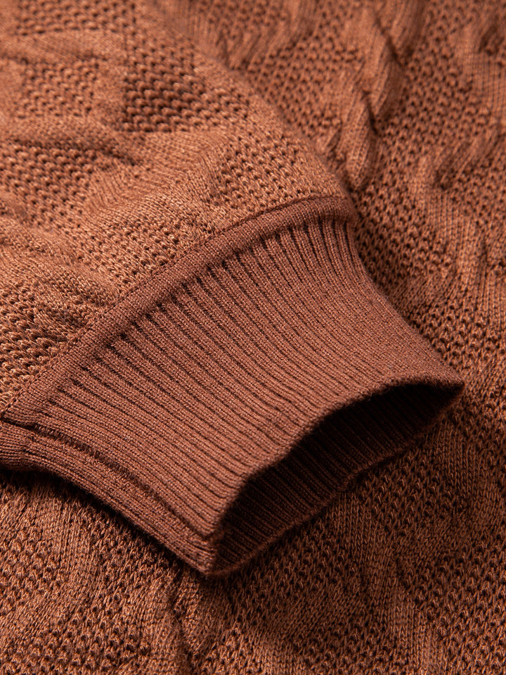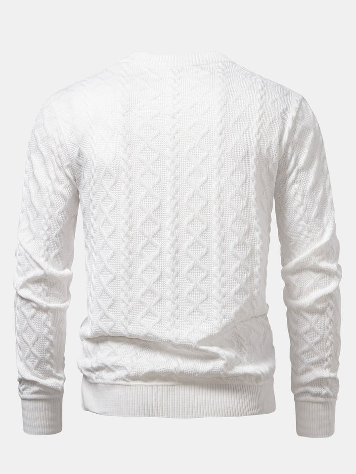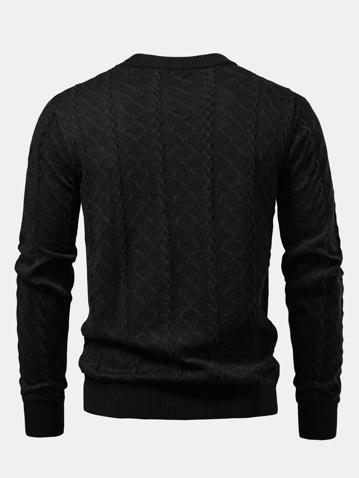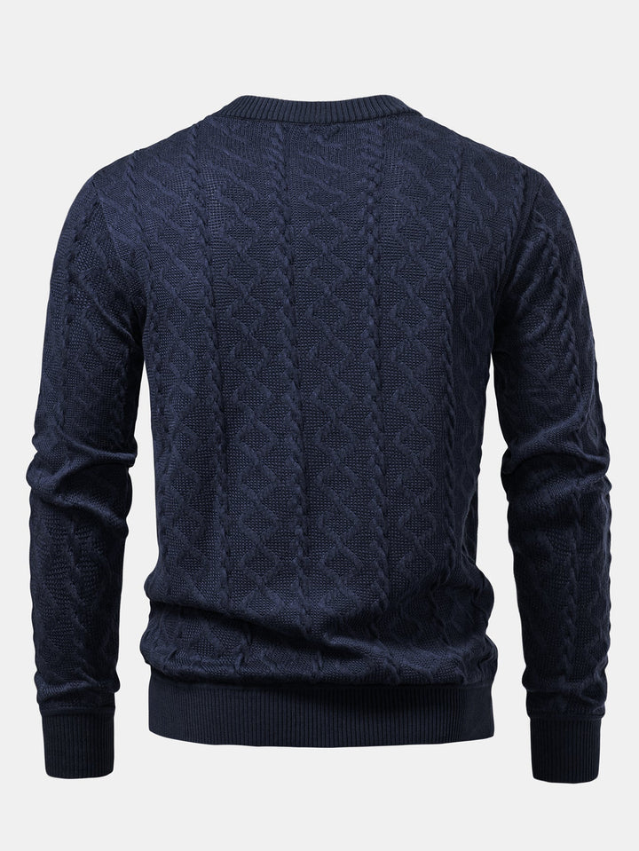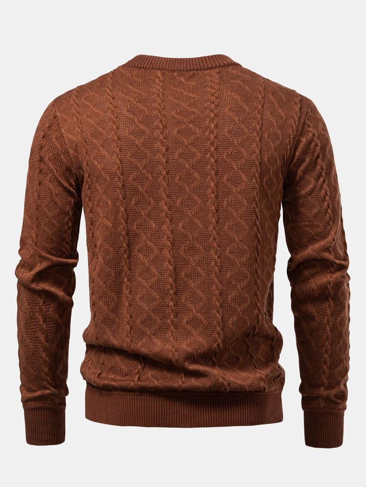 Featuring a unique geometric jacquard pattern, this sweater blends contemporary design with timeless comfort. The crew neck offers a classic silhouette, while the soft knit fabric provides warmth and breathability, perfect for everyday wear. Ideal for layering or wearing solo, it’s a versatile piece for casual outings, office-casual looks, or relaxed weekends.