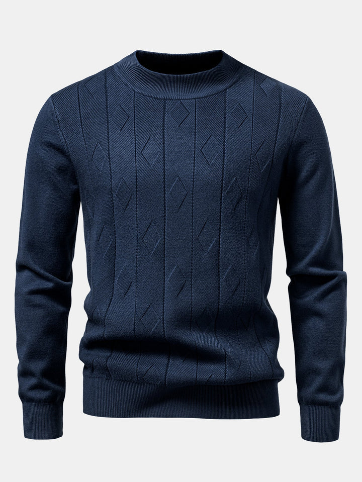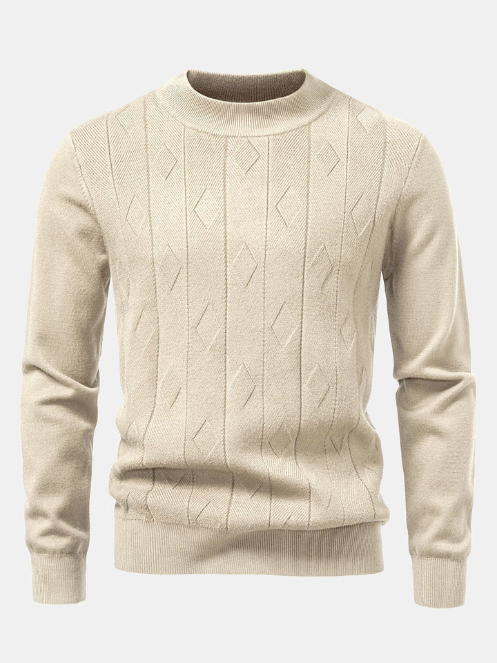 Featuring a unique geometric jacquard pattern, this sweater blends contemporary design with timeless comfort. The crew neck offers a classic silhouette, while the soft knit fabric provides warmth and breathability, perfect for everyday wear. Ideal for layering or wearing solo, it’s a versatile piece for casual outings, office-casual looks, or relaxed weekends.