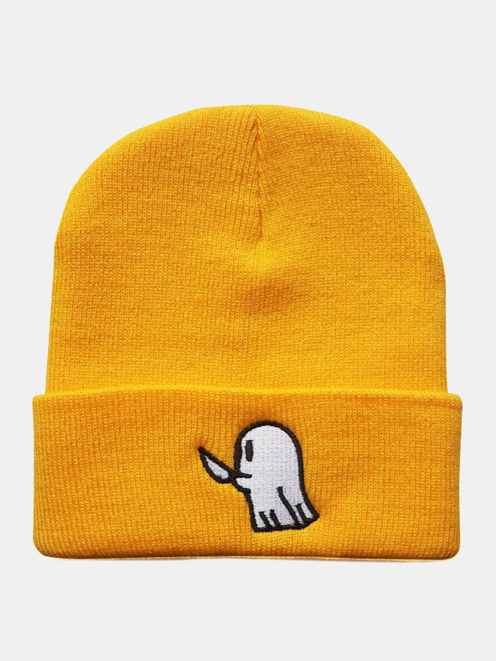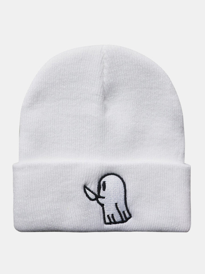 Featuring a playful ghost embroidery, this cozy knitted beanie is perfect for chilly autumn nights, Halloween parties, or casual winter wear. Soft, stretchable fabric ensures a comfortable fit for everyday use, making it both practical and stylish.