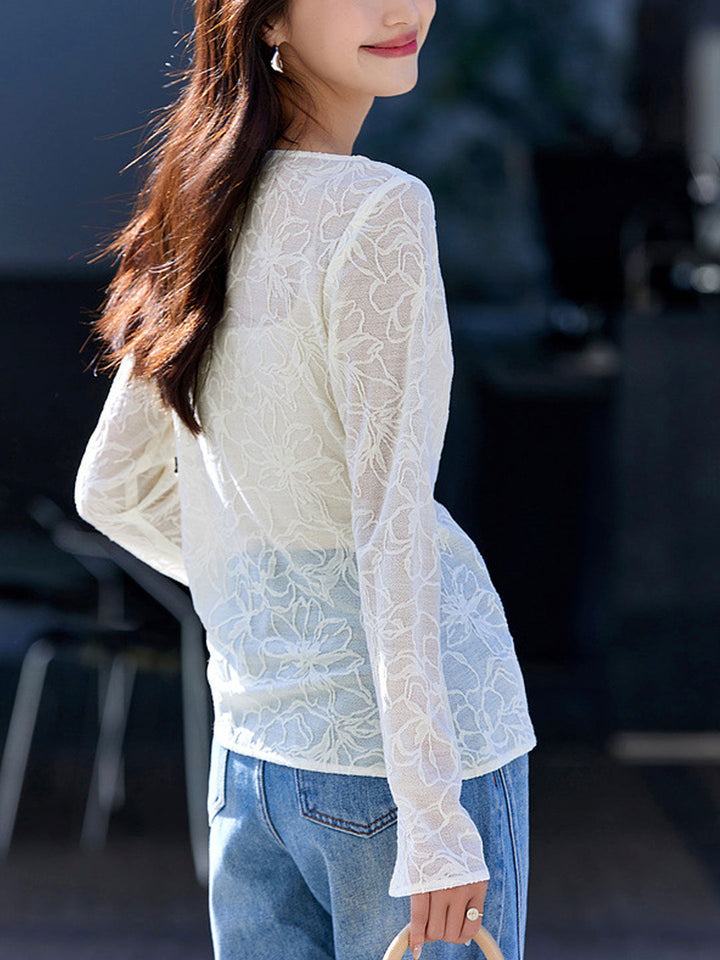 Haut asymétrique en jacquard à col rond décontracté Arianna