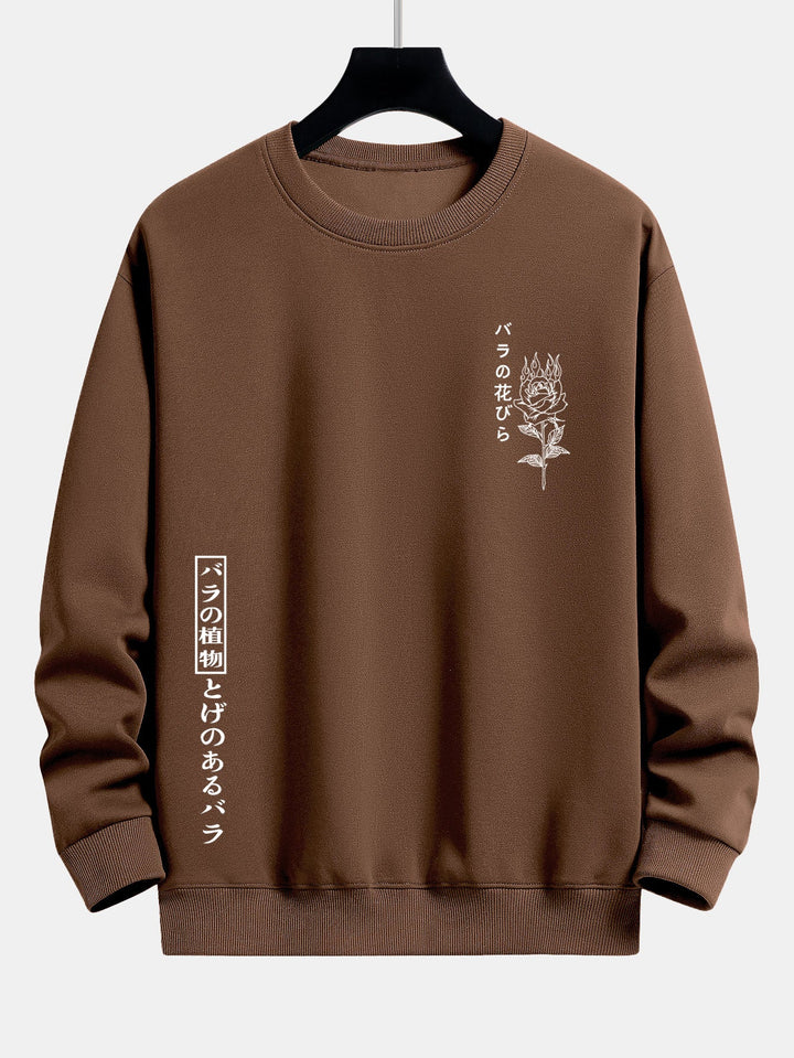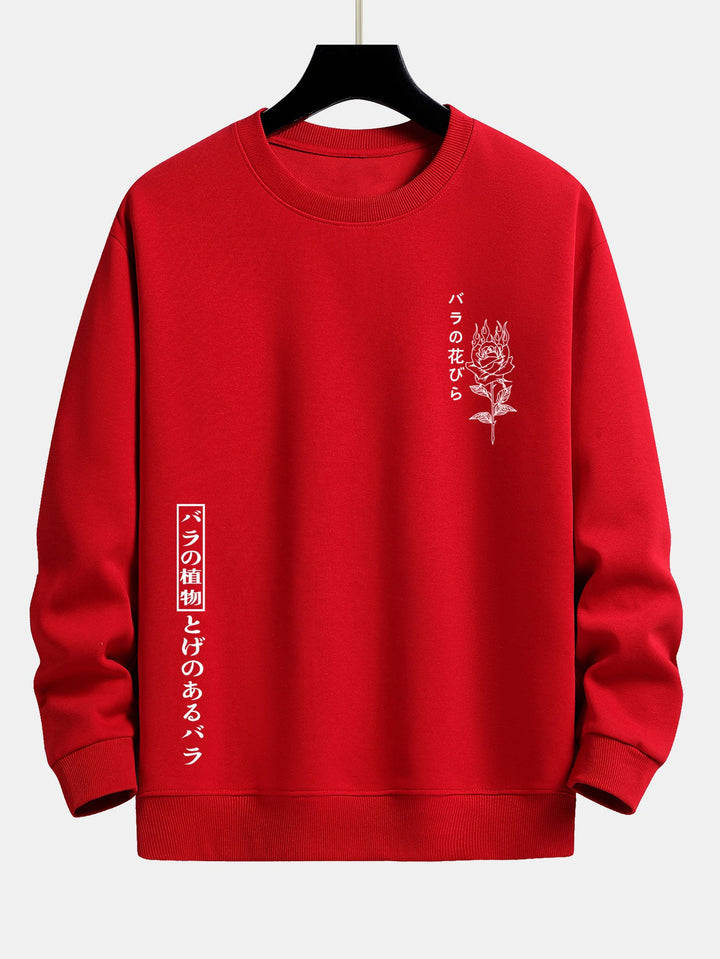 Featuring a delicate Japanese-inspired rose graphic on soft, cozy fabric, this sweatshirt blends casual comfort with a touch of artistic flair. The relaxed fit makes it perfect for layering or wearing on its own, ideal for everyday wear or relaxed weekends.