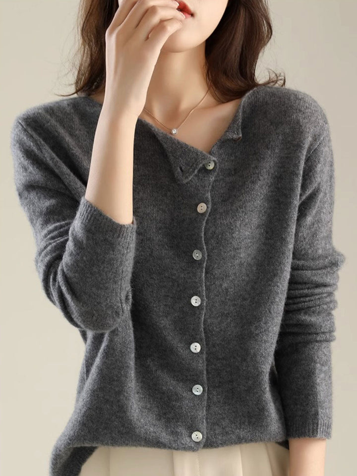 Kayla Classic Crew Neck Knitted Cardigan-Gris