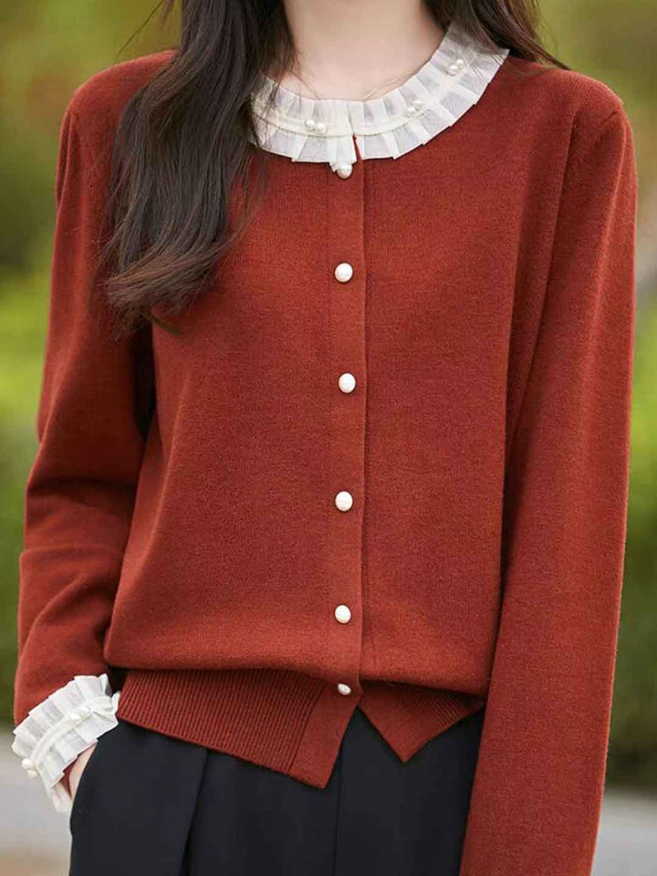 Kylie Cardigan Tricot à Manches Fleuries et Col Rond Lâche
