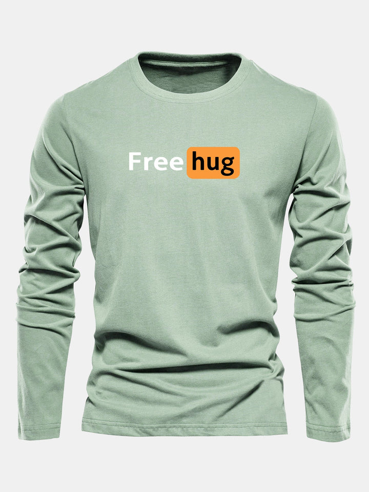 Long Sleeve Free Hug Print Cotton T-Shirt