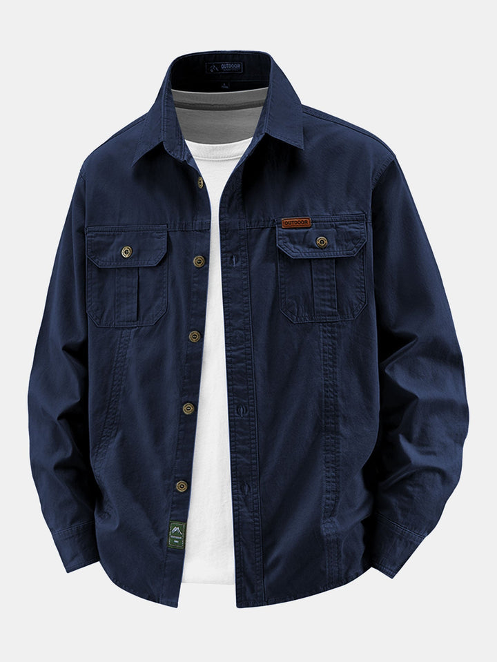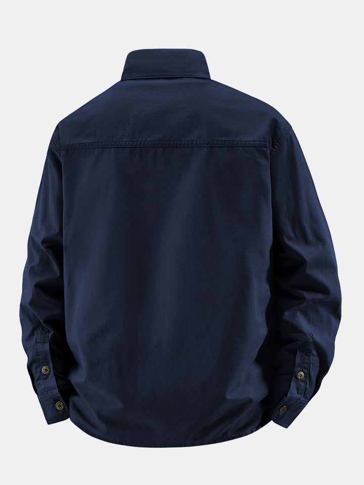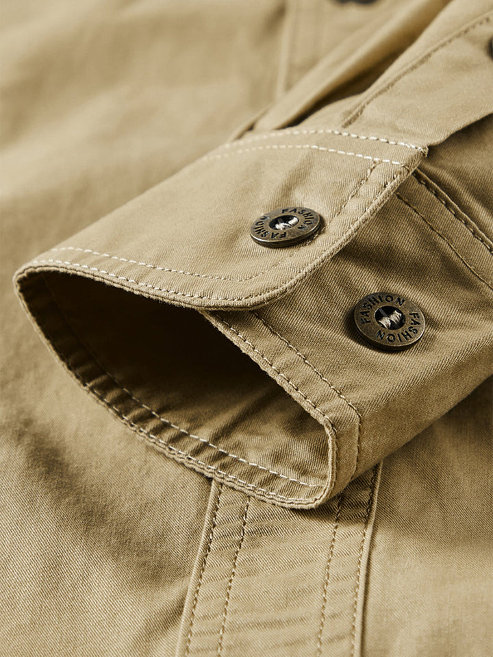 Crafted from breathable cotton, this shirt combines comfort with utility-inspired design. Featuring multiple front cargo pockets for a functional touch, it's perfect for casual outings, workwear looks, or layering in cooler weather.