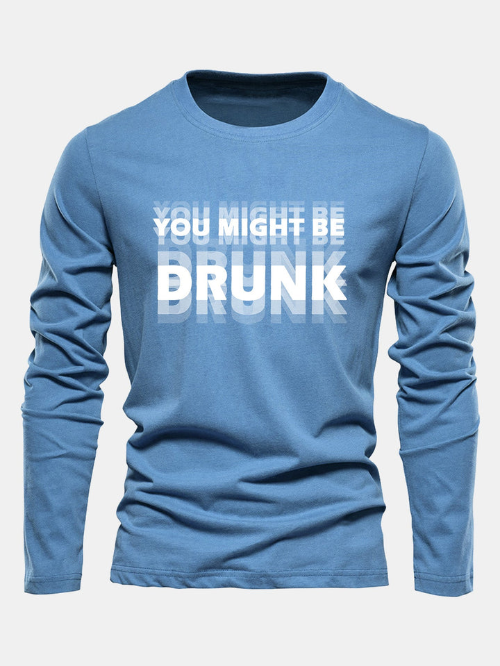 Long Sleeve You Might Be Drunk Print Cotton T-Shirt