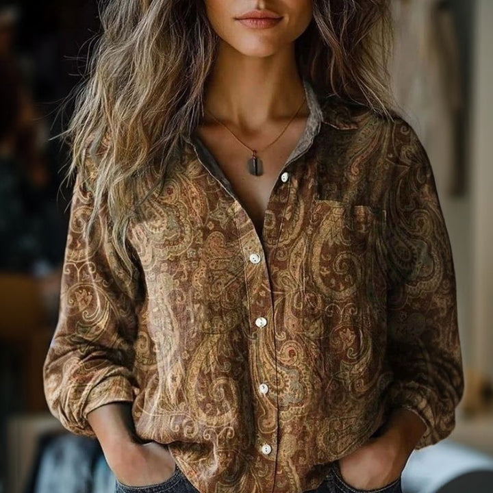 【Manches Longues】Chemise Vintage Avec Imprimé Ethnique