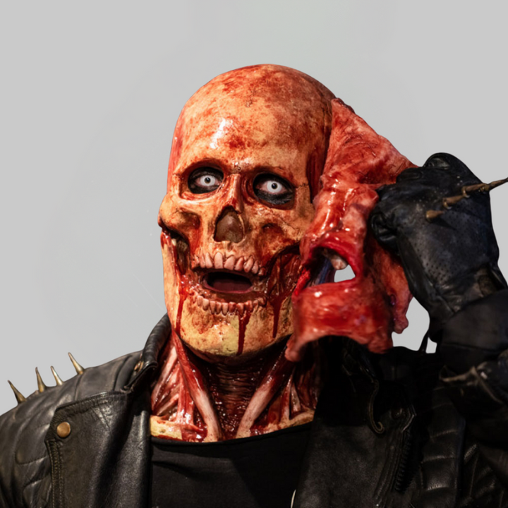 Aumenta el realismo de tu disfraz este Halloween con la máscara Joker calavérica, diseñada en látex de alta calidad con detalles impactantes. Su doble capa y boca movible crean un efecto espeluznante y auténtico, mientras que el diseño que cubre cuello y parte del pecho aporta un acabado mucho más realista. Ideal para cosplay, fiestas de terror y utilería de Halloween, es la pieza definitiva para quienes buscan causar impresión.