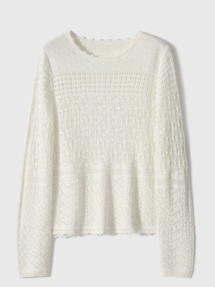 Mia Haut Tricoté Jacquard Creux à Col Rond