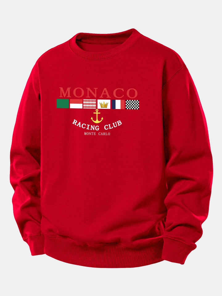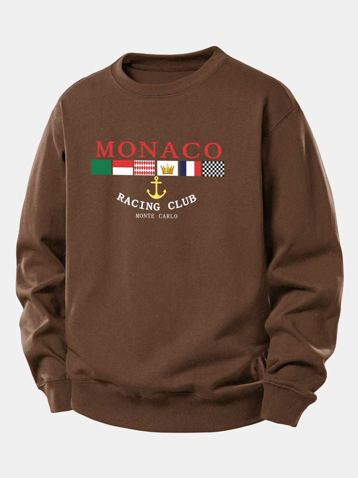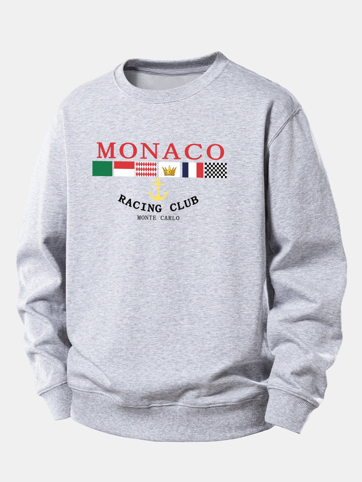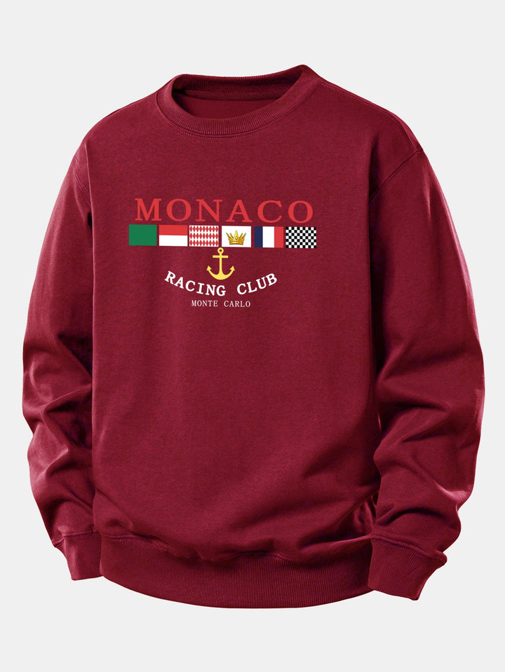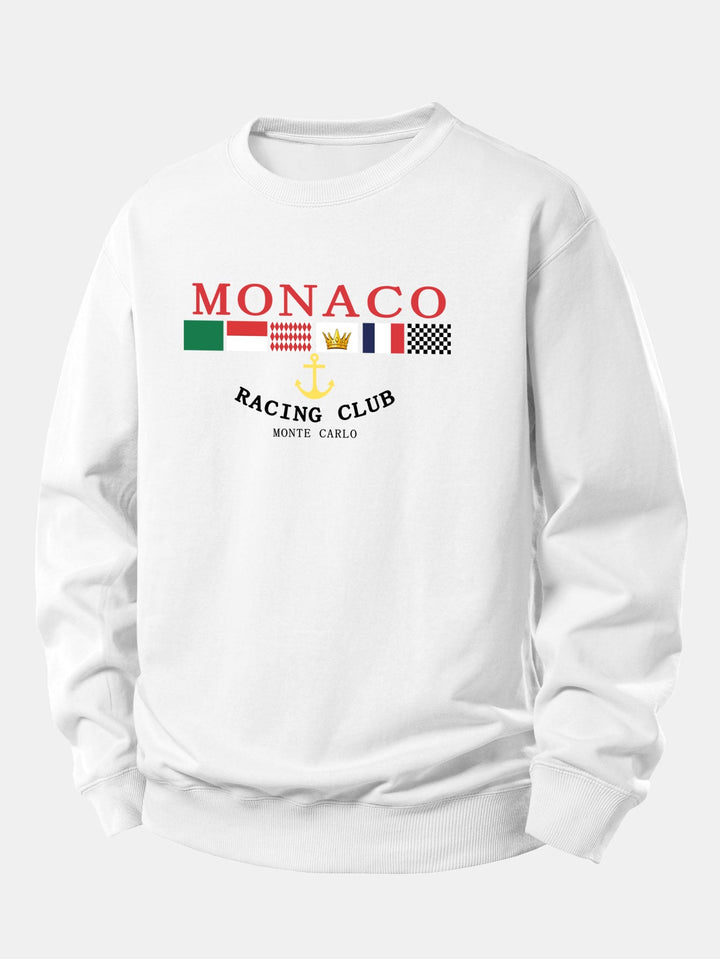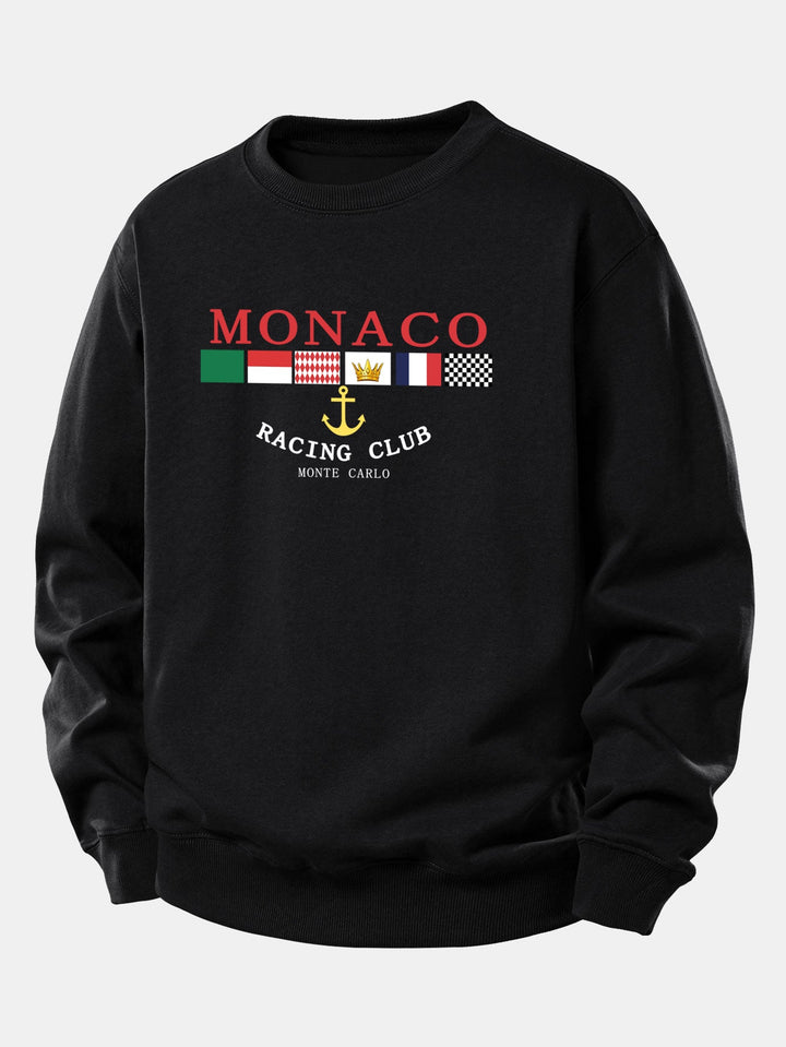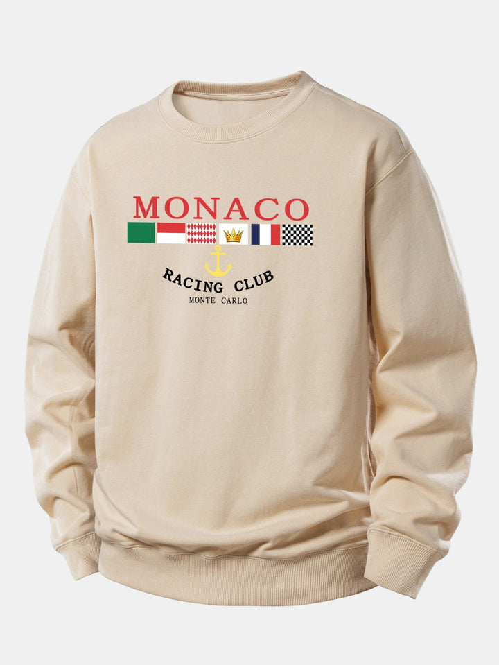 Show off urban flair with the Monaco print relax fit sweatshirt. Featuring a bold "Monaco" graphic and a relaxed silhouette, this sweatshirt combines everyday comfort with city-inspired streetwear style.