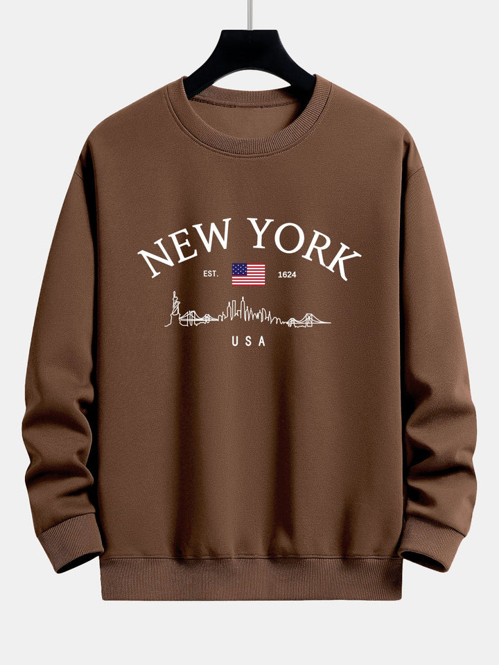 Bring urban vibes to your casual wardrobe with our New York print relax fit sweatshirt. Featuring bold New York lettering on a soft, cozy fabric, this sweatshirt combines effortless comfort with streetwear-inspired style. Its relaxed silhouette makes it perfect for layering or wearing on its own for an easy everyday look.