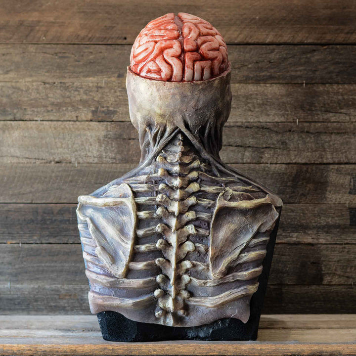 -Detalles: Cabeza grotesca con cerebro expuesto
