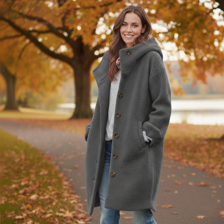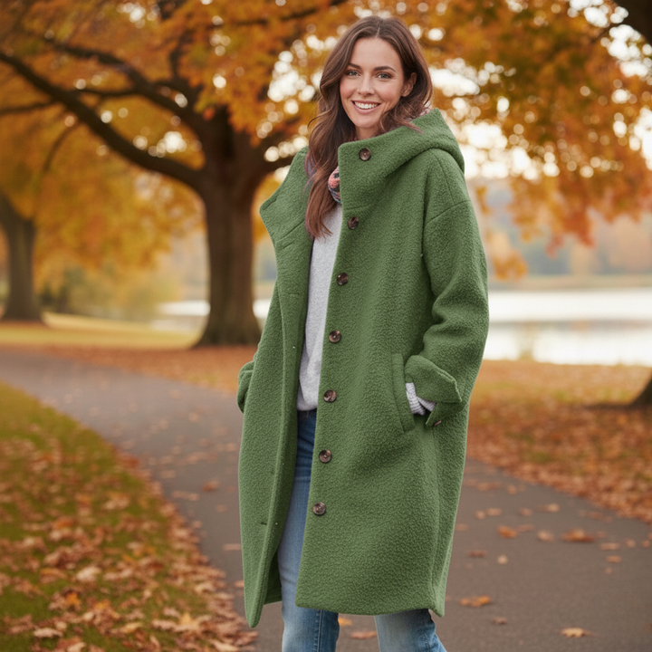 Enveloppez-vous de chaleur et de sofistication avec le Manteau d'Automne Olivia. Doté d'une capuche douillette, d'une fermeture à boutons classique et d'une coupé descontractée, il représente l'equilibre parfait entre elegancia y confort pour les jours frais d'automne.