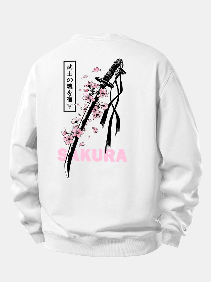 Sakura Katana Back Print Relax Fit Sweatshirt