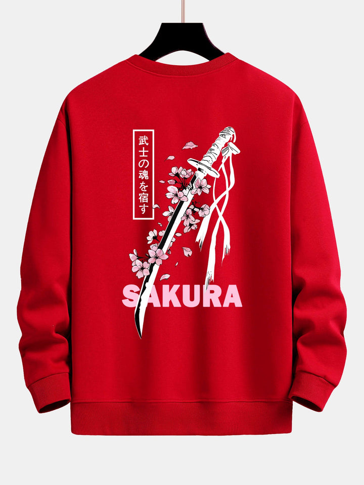 Sakura Katana Back Print Relax Fit Sweatshirt