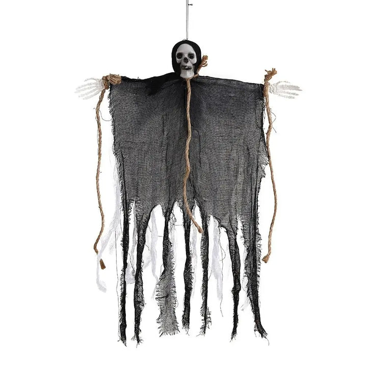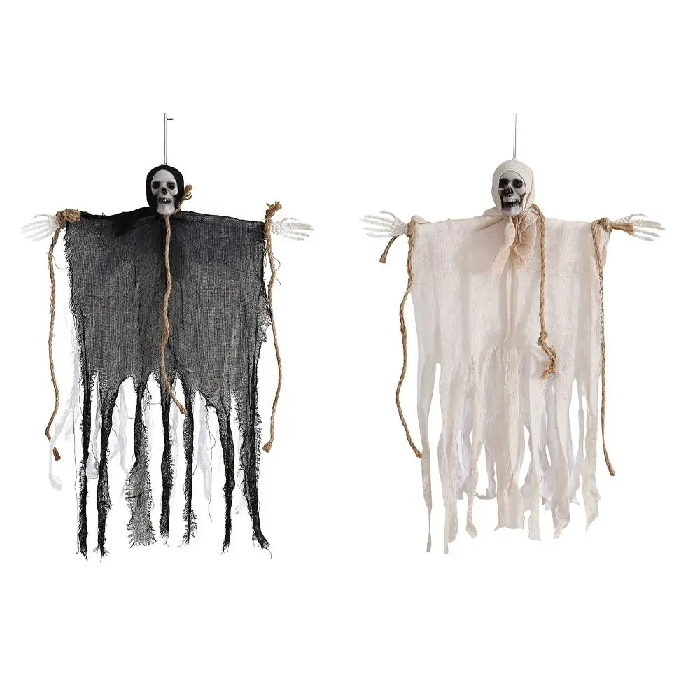 1. Plastic+cloth+wire material: Halloween scary hanging ghost decoration is mainly composed of plastic skulls and fabrics. The arms can be flexibly adjusted. The tattered fabric swings with the wind, like floating ghosts, which makes people feel horrified. It can also be easily stored for reuse in the coming year.
