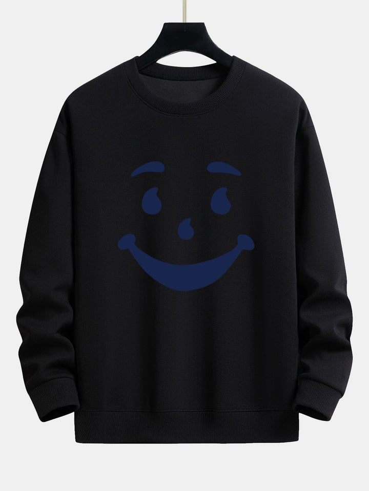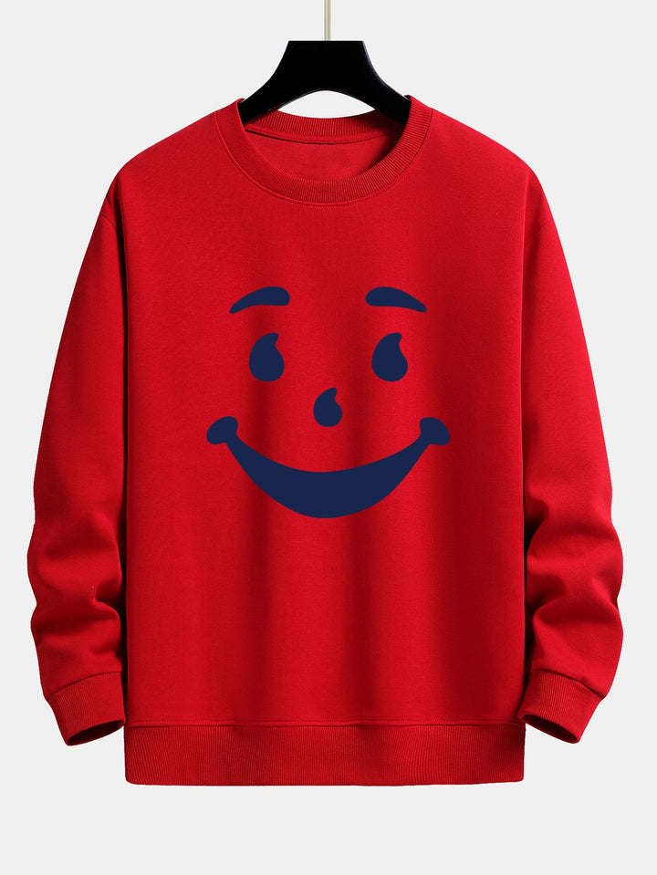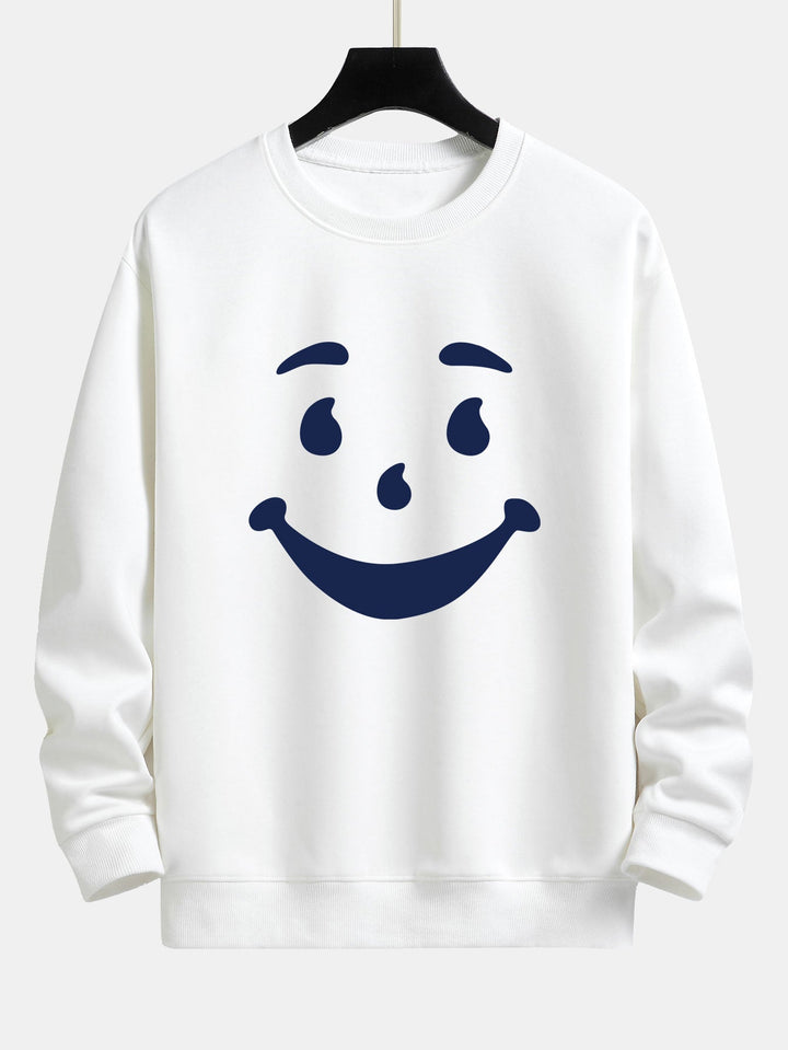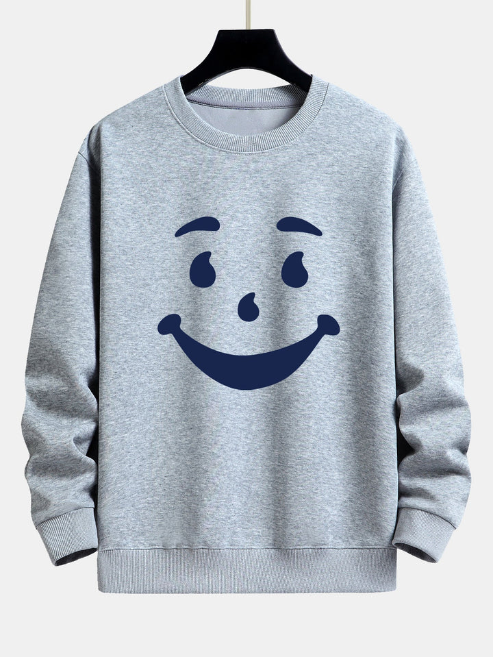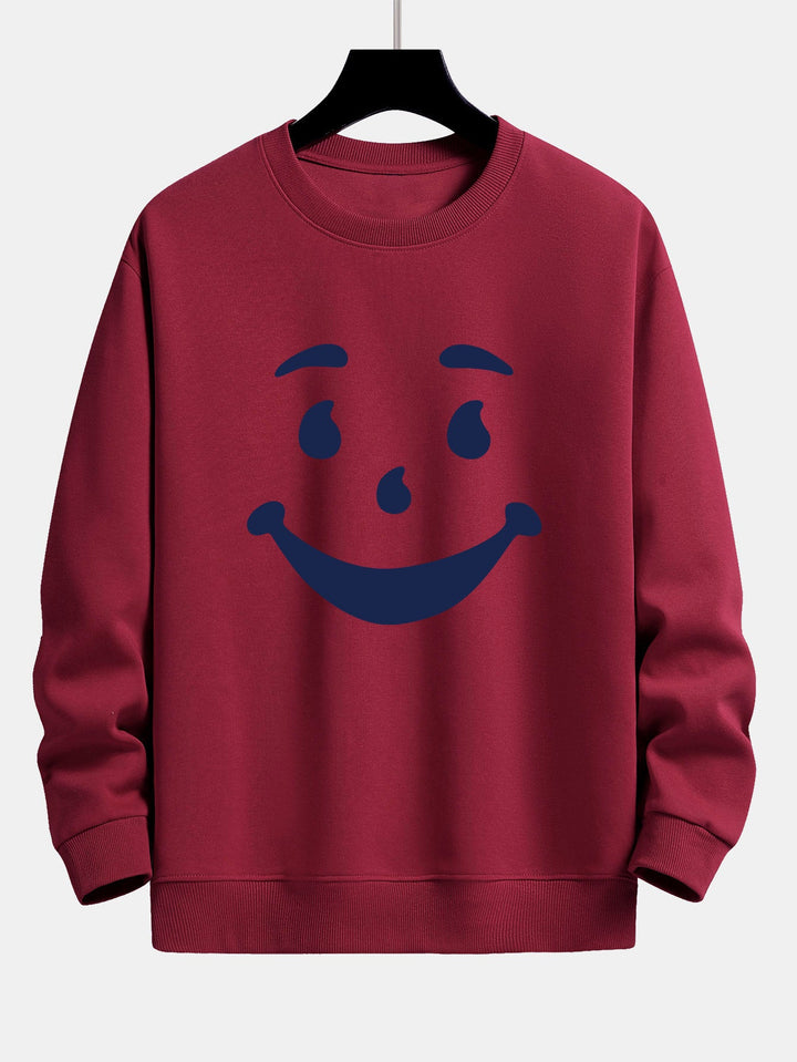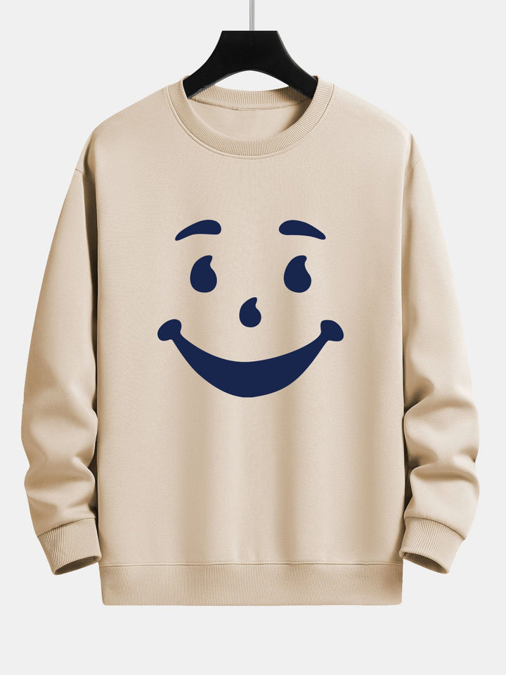 Featuring a cheerful smiley face graphic on soft, cozy fabric, this sweatshirt combines casual comfort with playful style. The relaxed fit makes it perfect for layering or wearing on its own, ideal for everyday wear, lounging, or casual outings.
