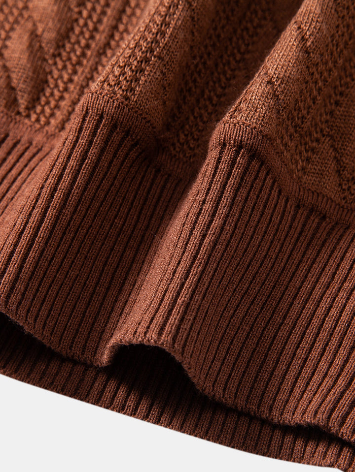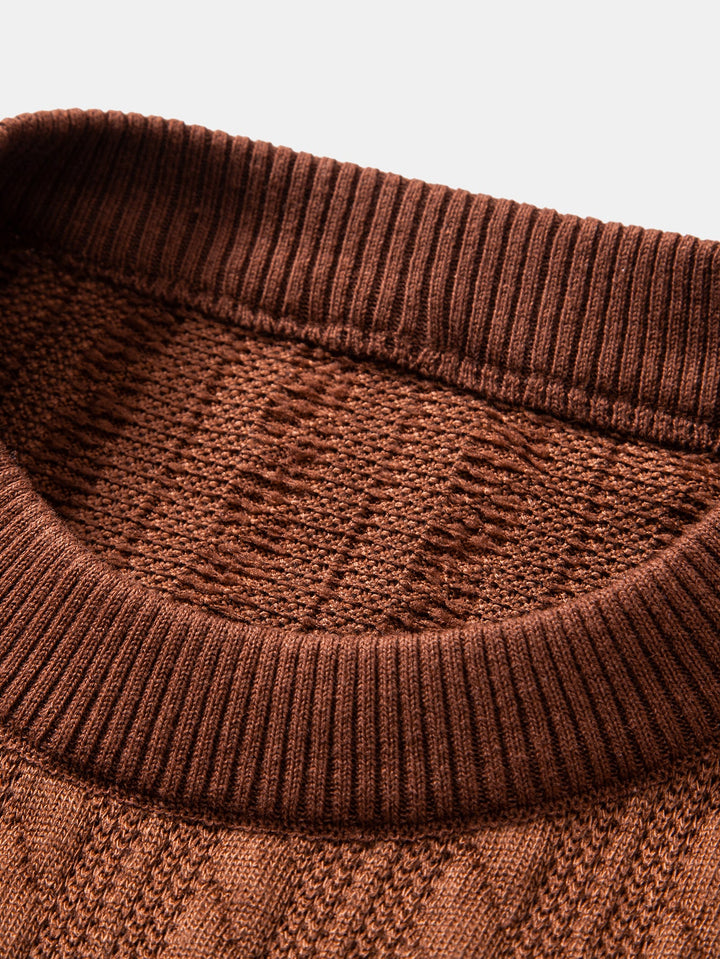 Featuring a unique geometric jacquard pattern, this sweater blends contemporary design with timeless comfort. The crew neck offers a classic silhouette, while the soft knit fabric provides warmth and breathability, perfect for everyday wear. Ideal for layering or wearing solo, it’s a versatile piece for casual outings, office-casual looks, or relaxed weekends.