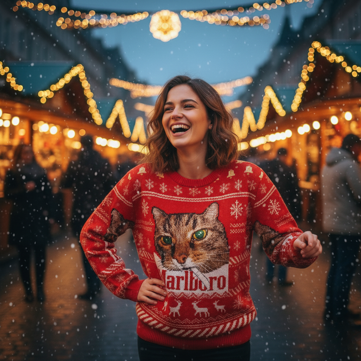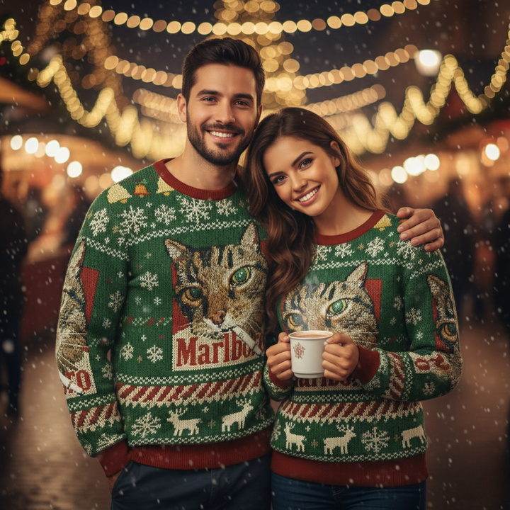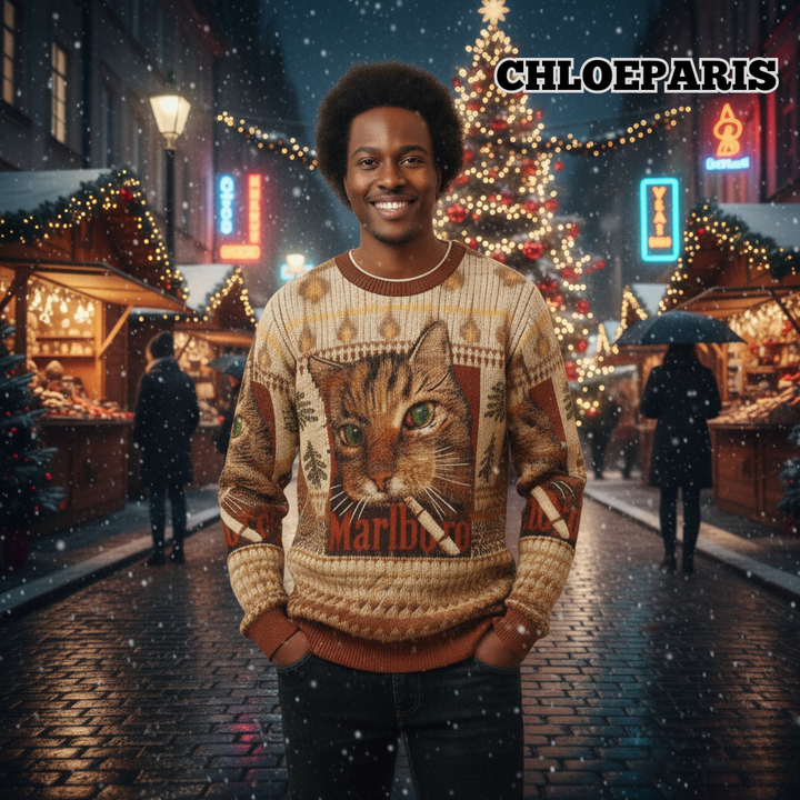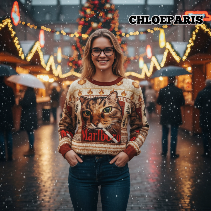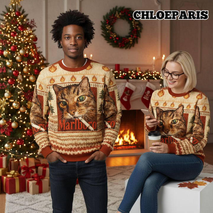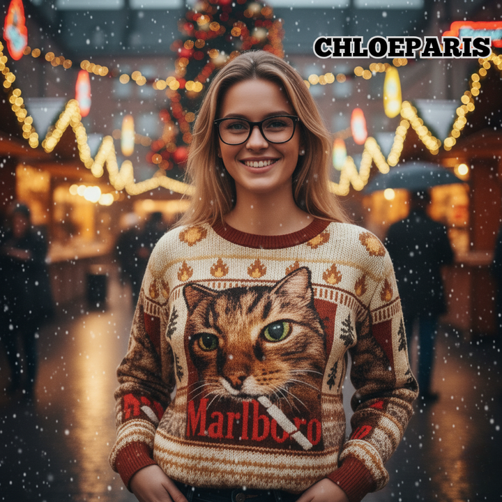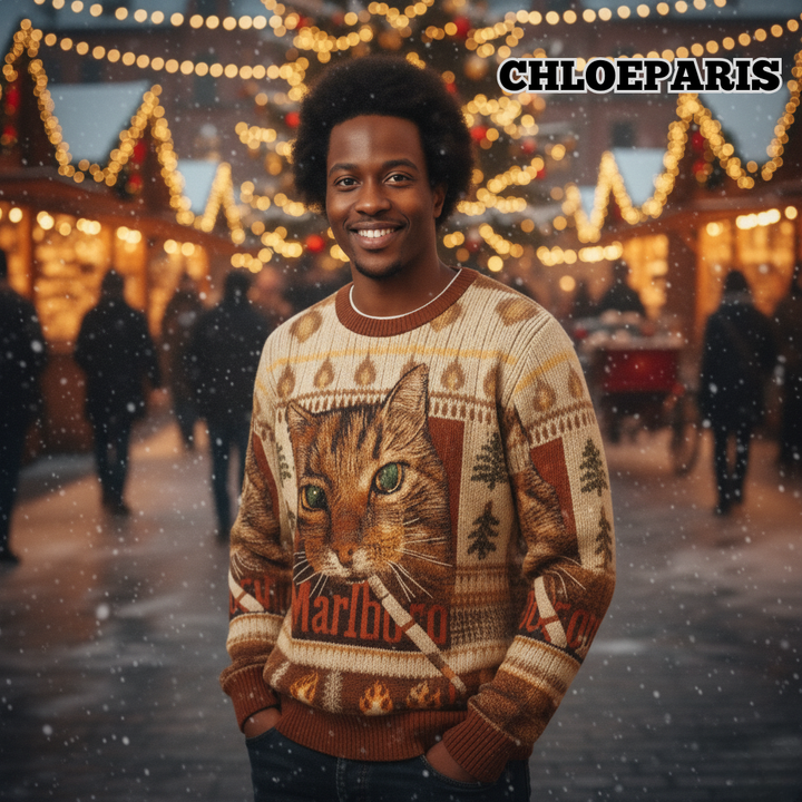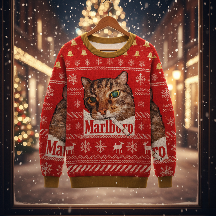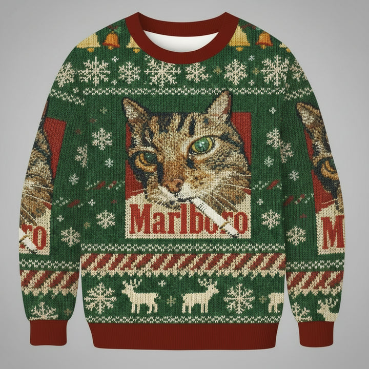 Sweatshirt Moche de Noël avec un Chat Fumeur Drôle de Tokyocanvas