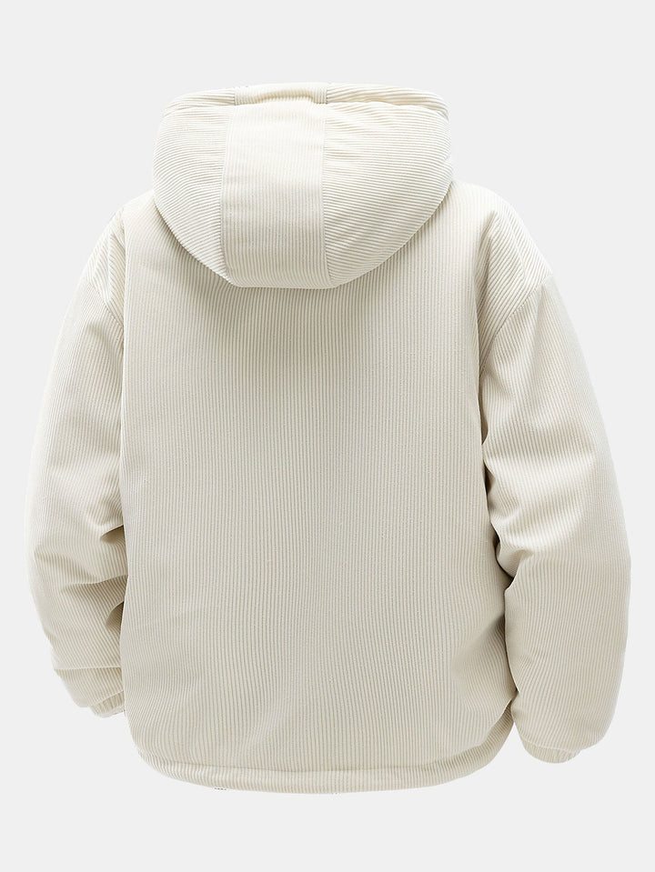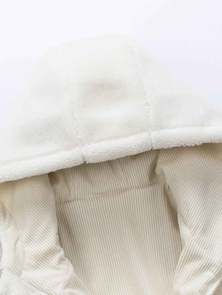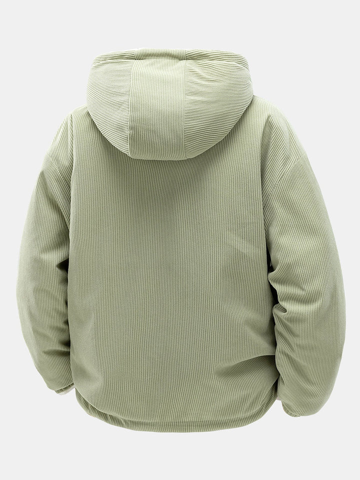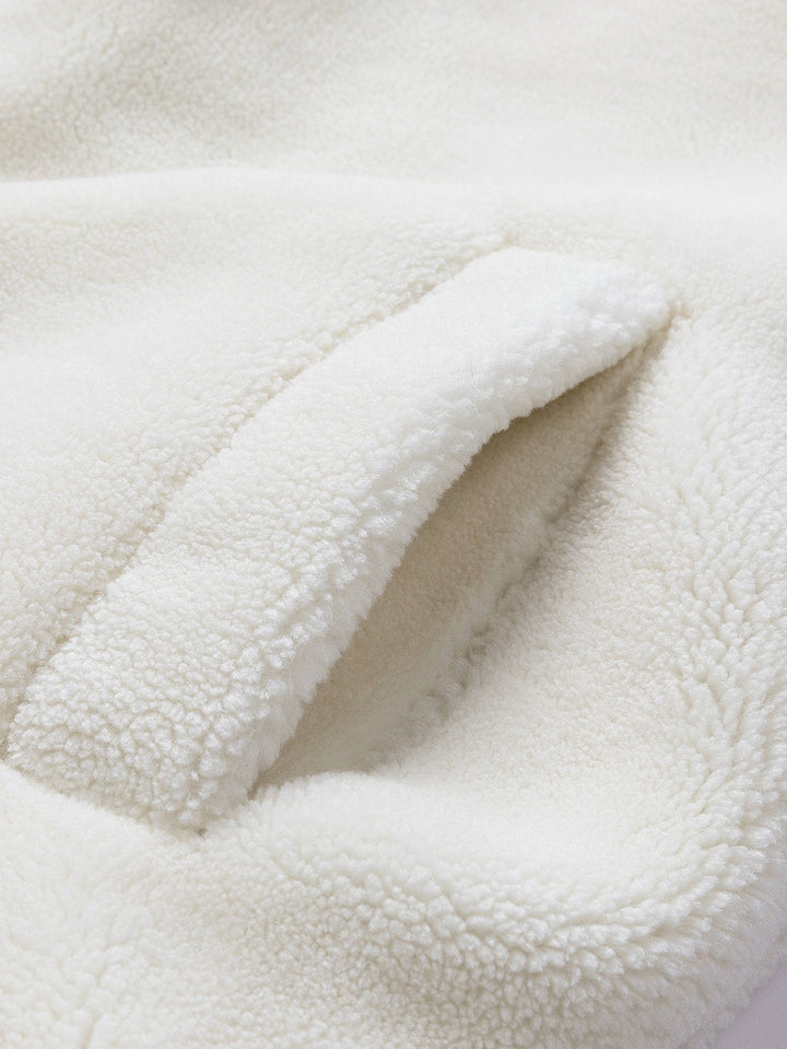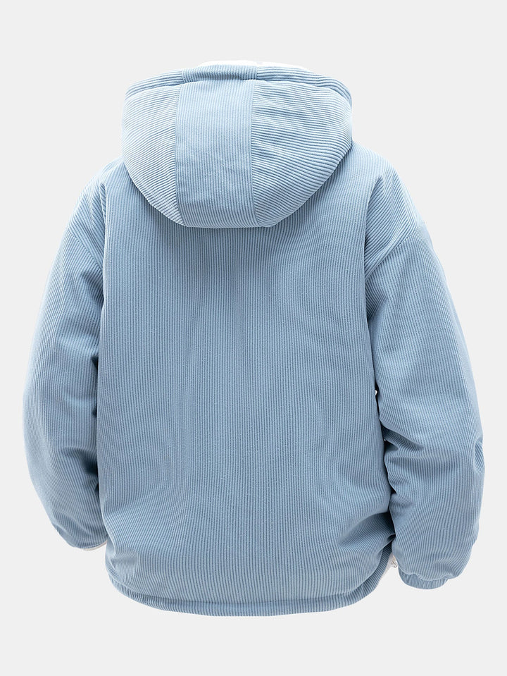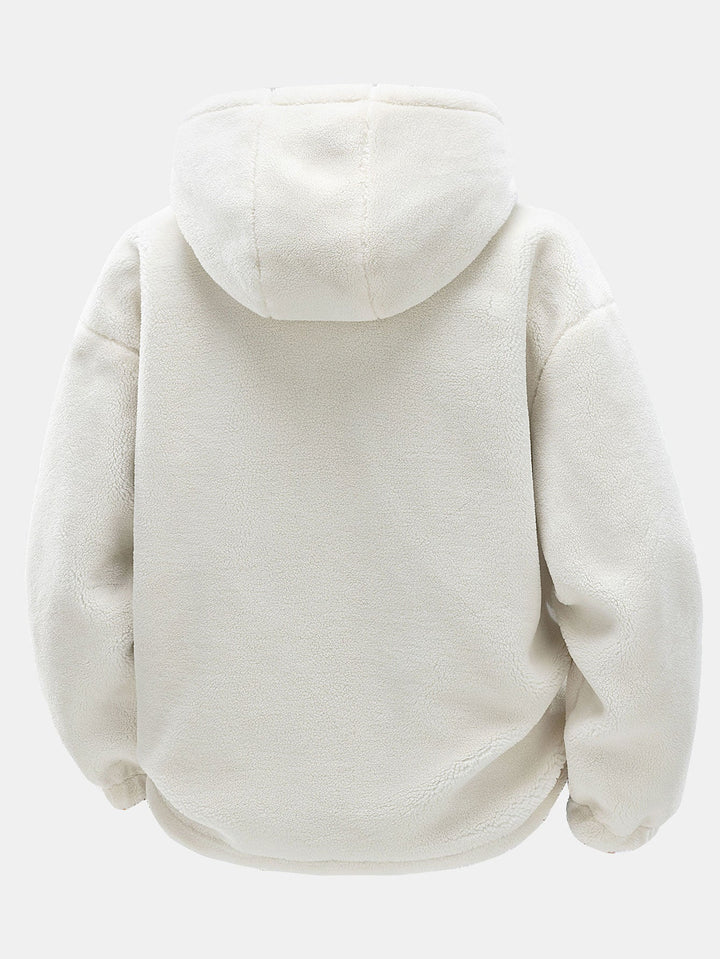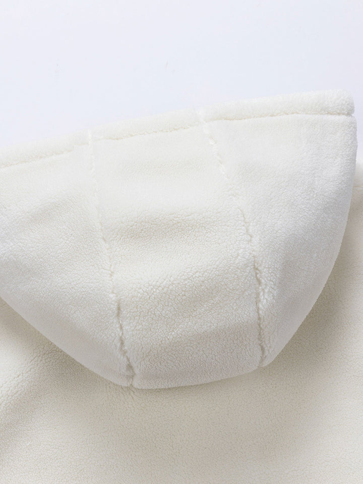 Featuring a cozy teddy fleece lining on one side and a sleek outer shell on the other, this jacket offers two looks in one. The reversible design allows you to switch between casual comfort and stylish outerwear with ease. With its hooded design, zip-up closure, and relaxed fit, it's perfect for layering in cold weather, outdoor activities, or everyday wear.
