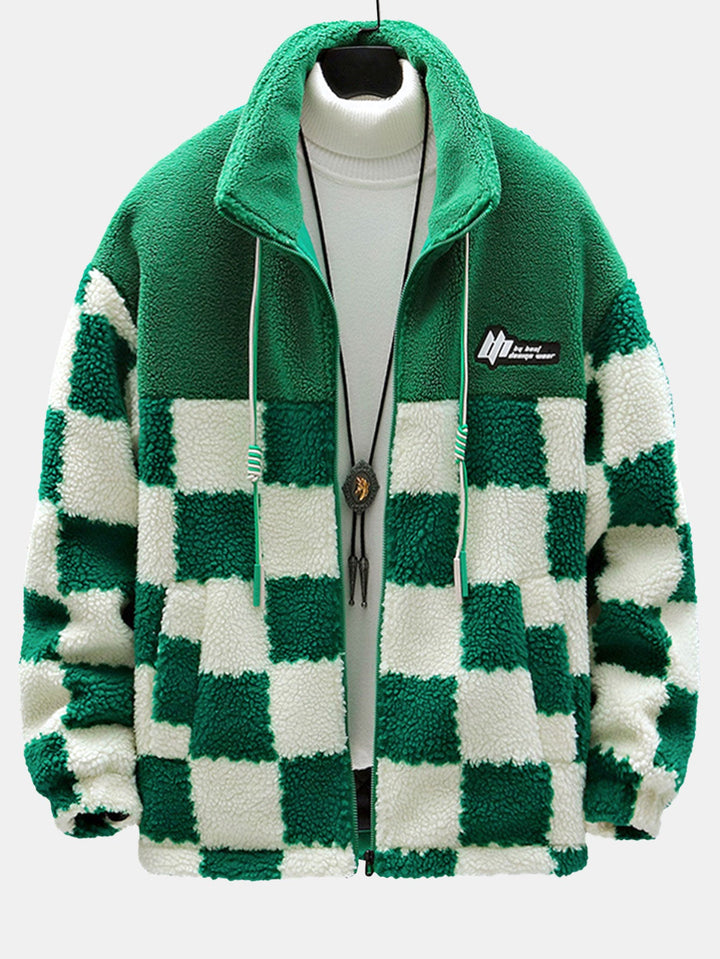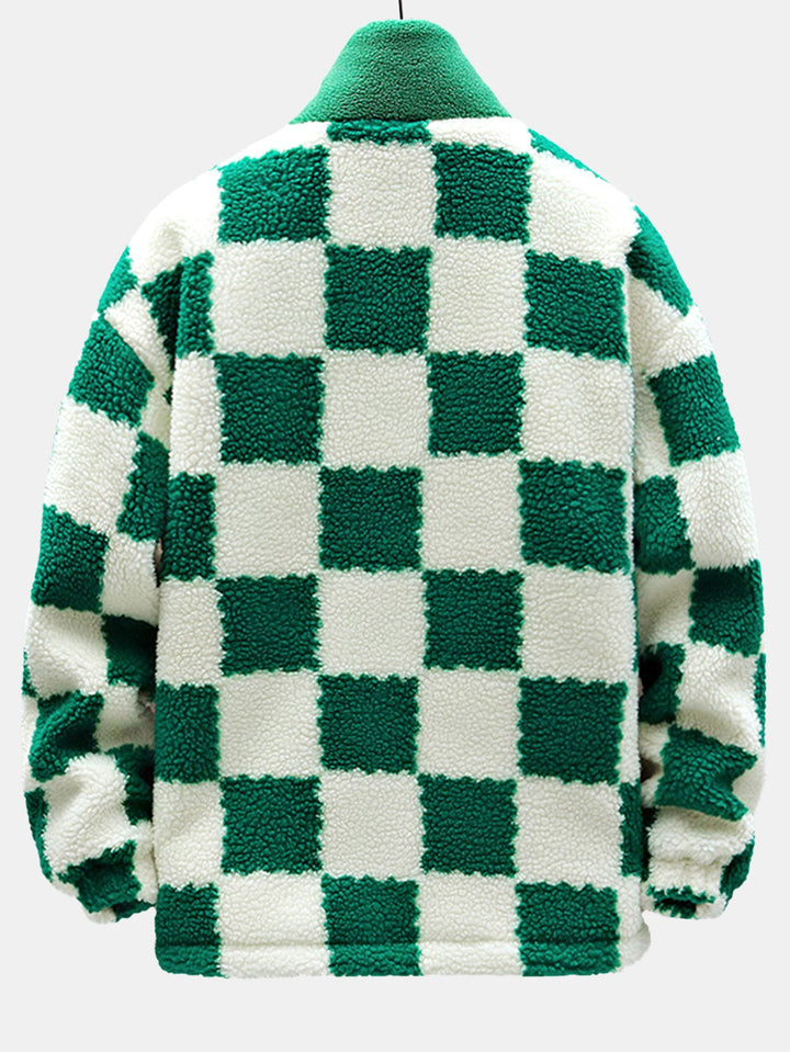 Teddy Fleece Checkerboard Stand Collar Jacket