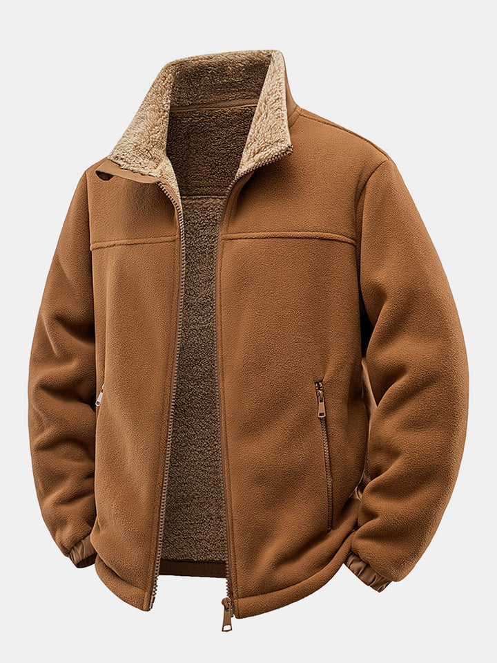 Teddy Lined Polar Fleece Zip-Up Stand Collar Jacket
