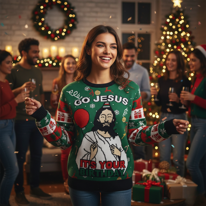 Tokyocanvas Go Jesus It's Your Birthday Funny Christmas Ugly Sweatshirt