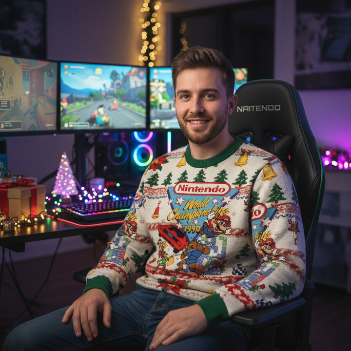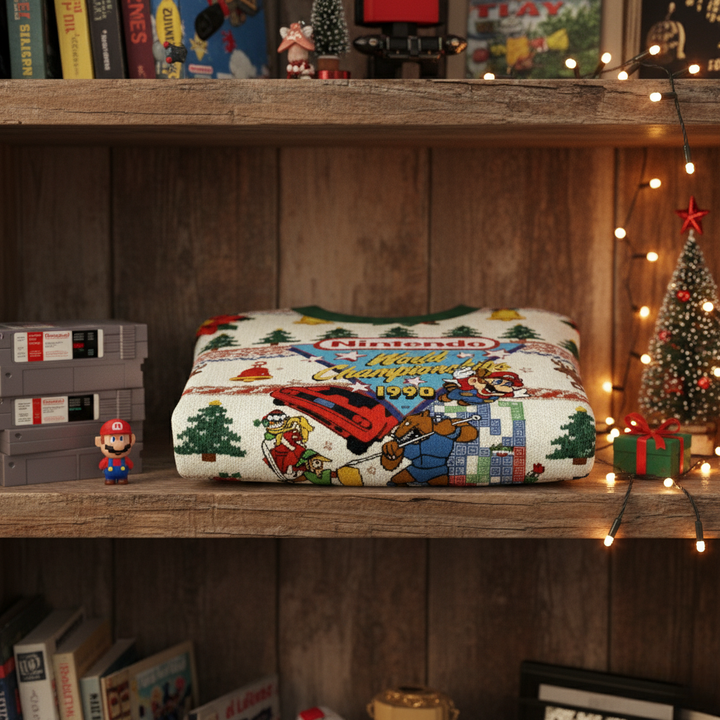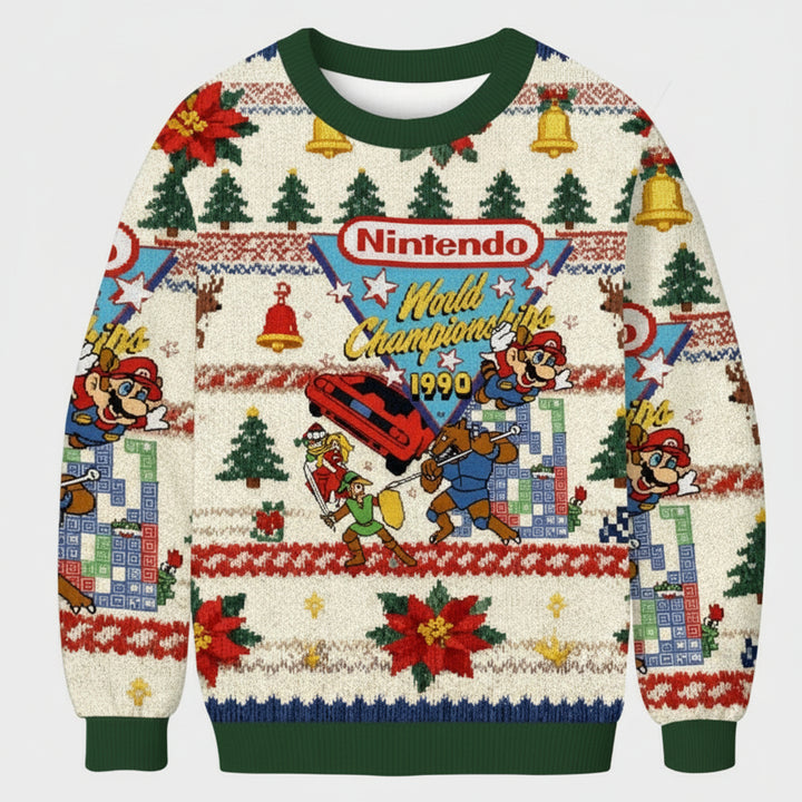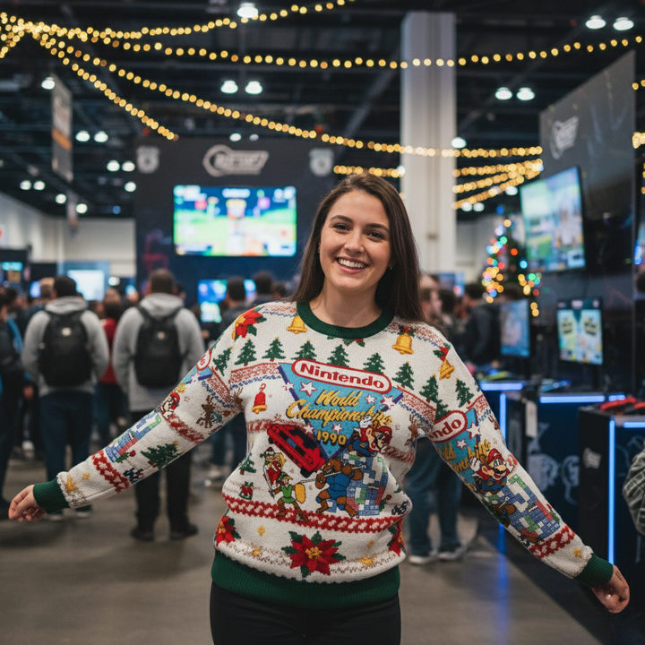 Tokyocanvas Nintendo 1990 World Championships Christmas Ugly Sweatshirt