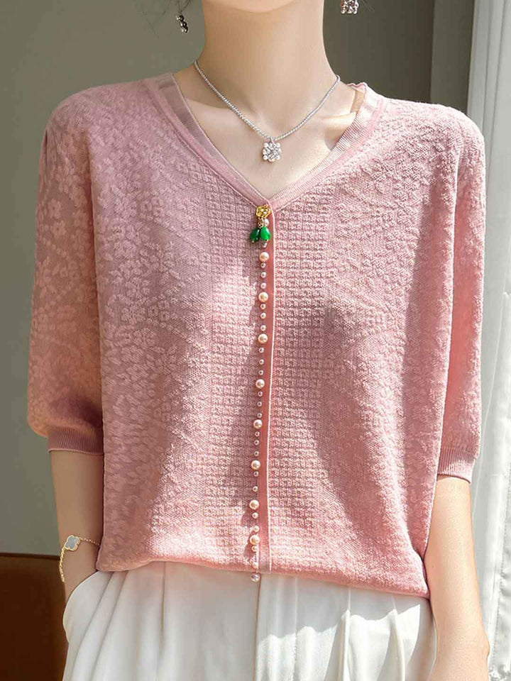 Top en organza à manches lanternes et décolleté en V rétro Alexis