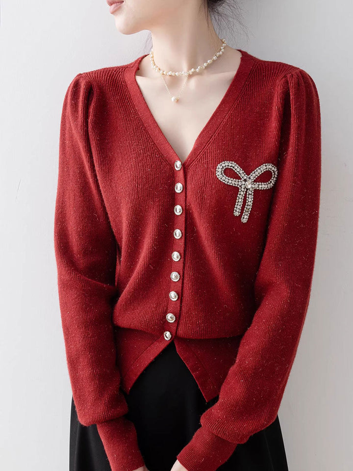 Top Tricoté Élégant V-Neck avec Diamants