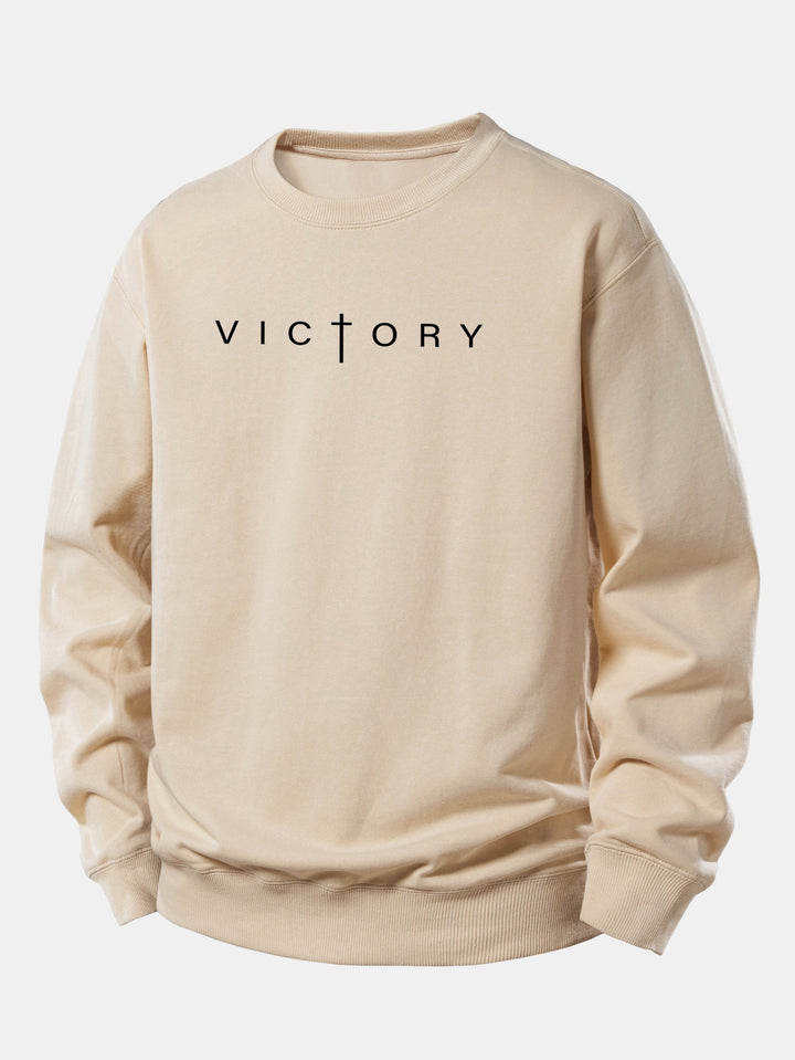 Show off confidence and style with the victory slogan print relax fit sweatshirt. Featuring a striking slogan graphic and a relaxed silhouette, it delivers casual comfort with a strong streetwear vibe.