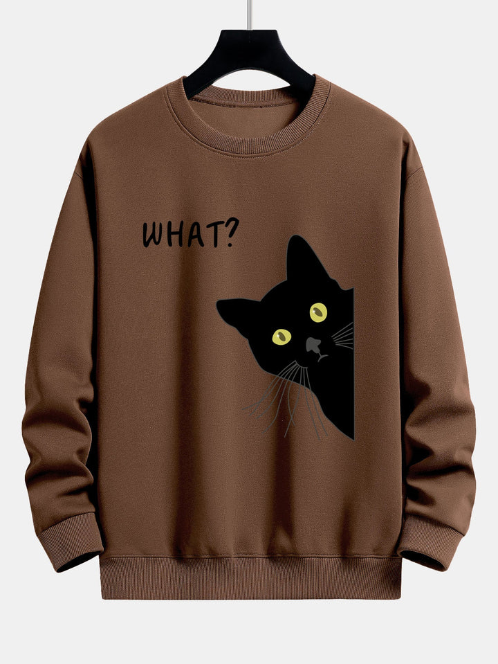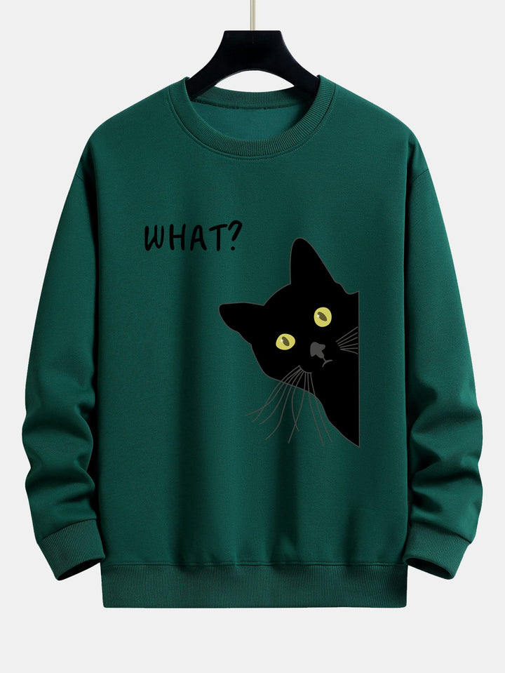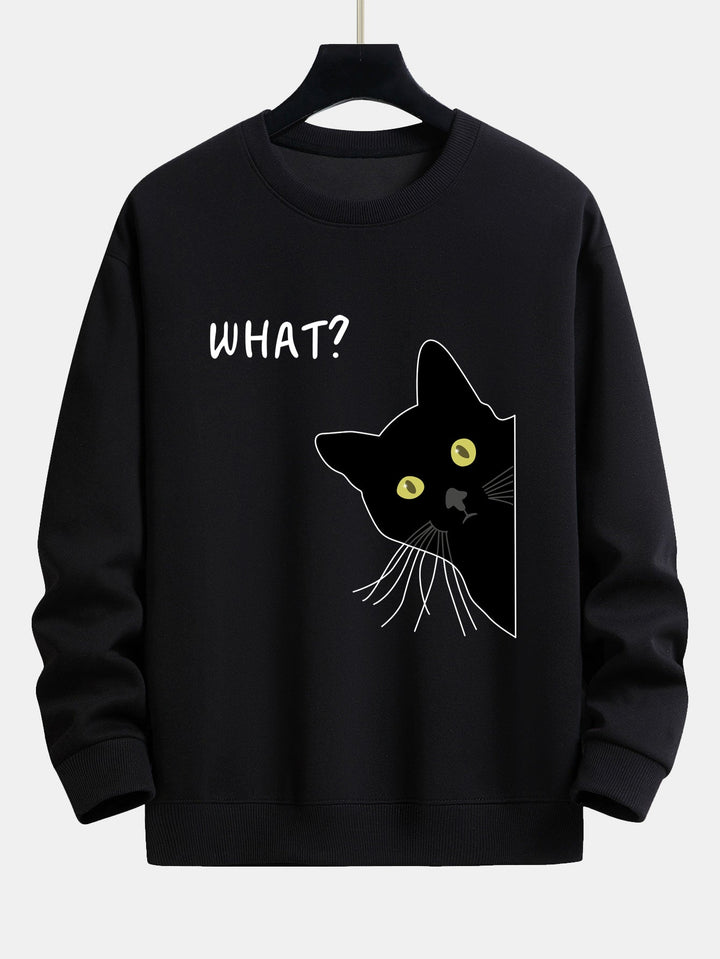 Print Relax Fit Sweatshirt. Featuring an adorable black cat graphic on soft, cozy fabric, this sweatshirt blends comfort with whimsical style. Its relaxed fit makes it perfect for layering or wearing on its own, ideal for casual outings, lounging, or everyday wear.