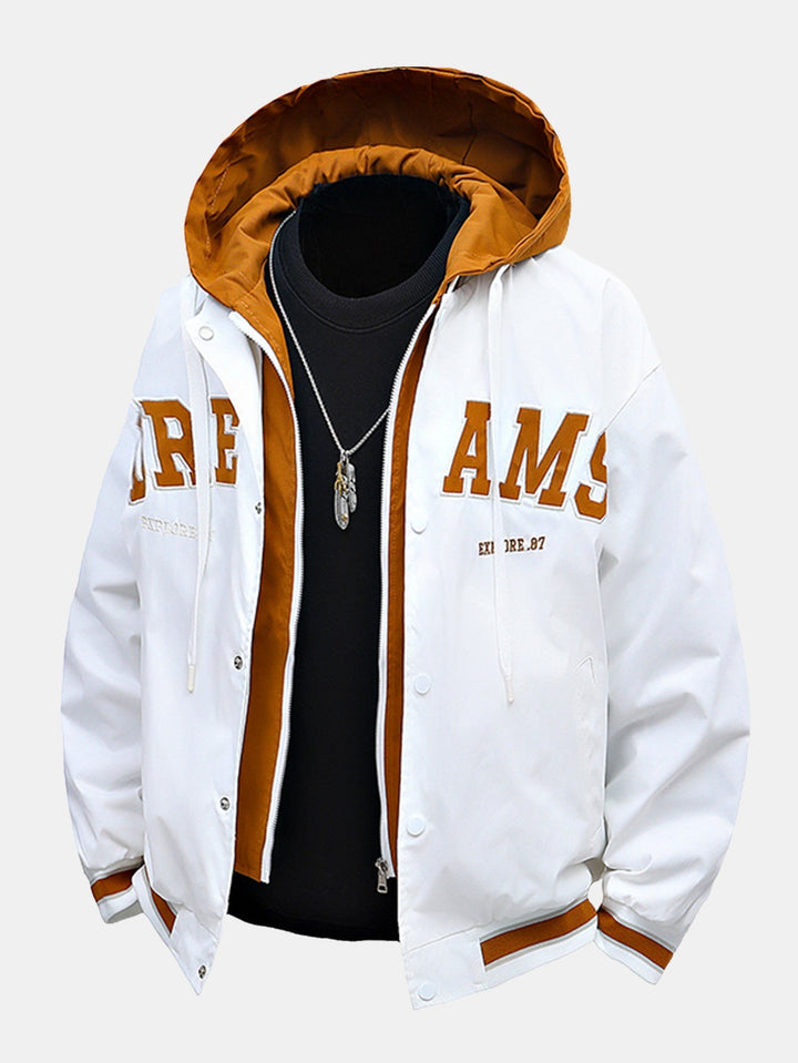 Améliorez votre style streetwear avec notre veste de baseball à capuche 2 En 1. Alliant une silhouette varsity classique à un insert de capuche, cette veste offre un parfait mélange de style athlétique et de confort polyvalent.