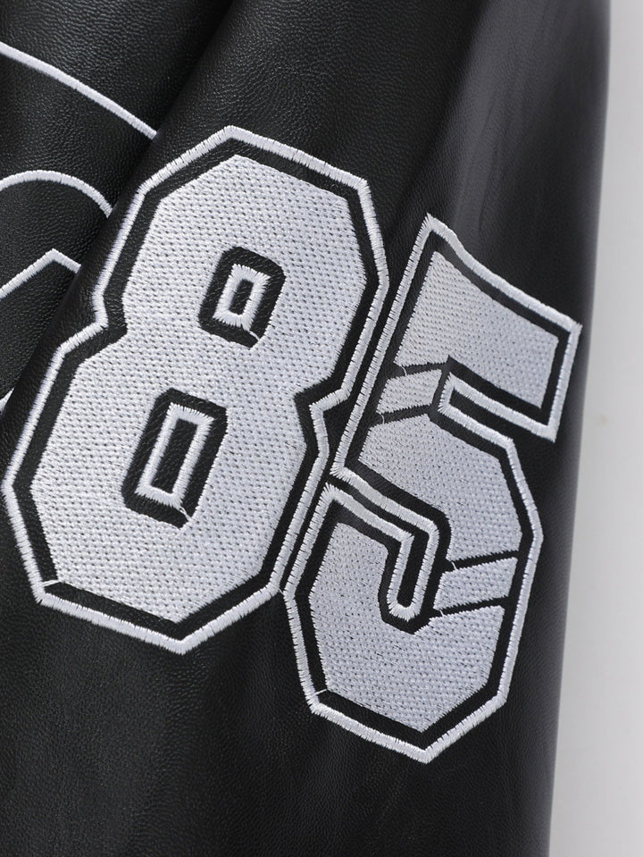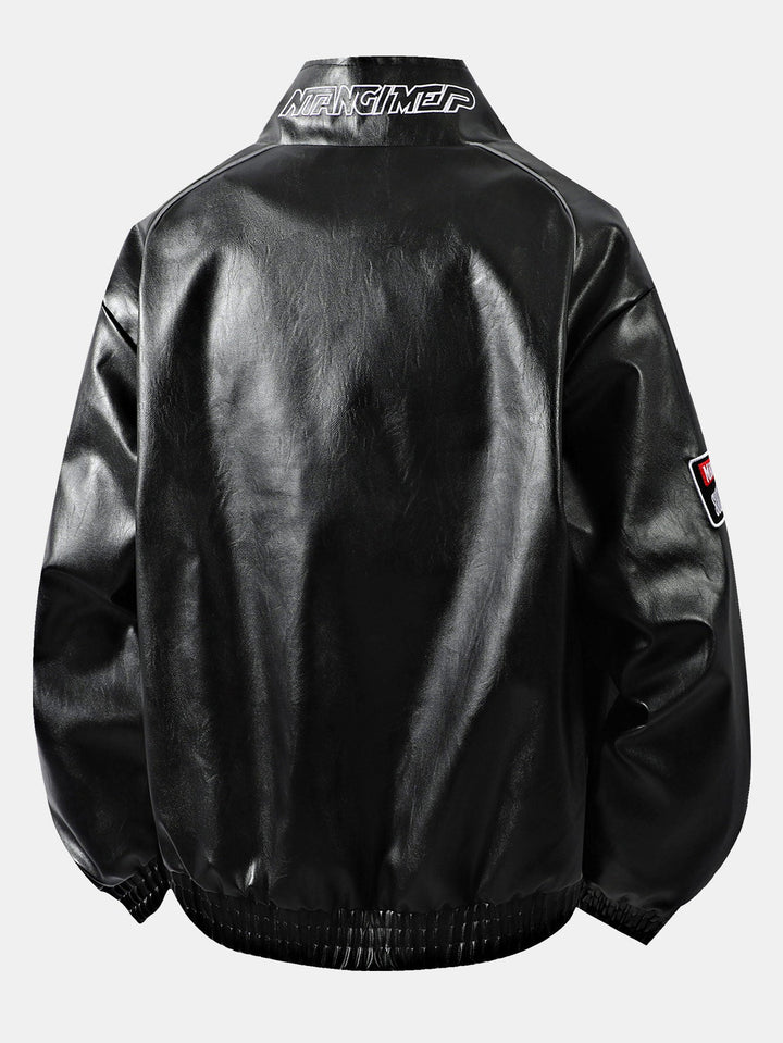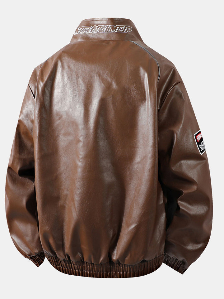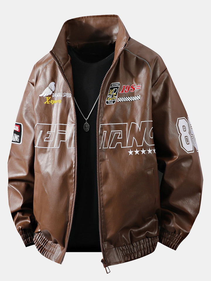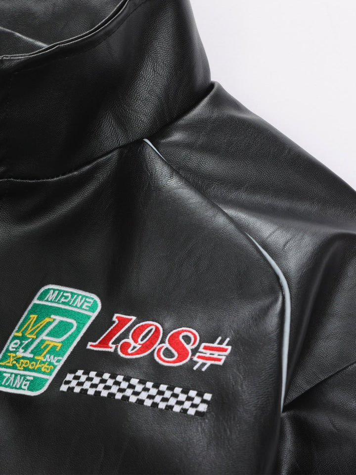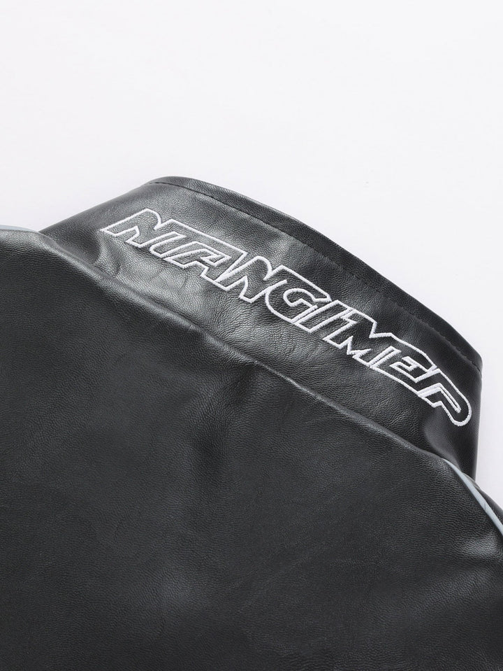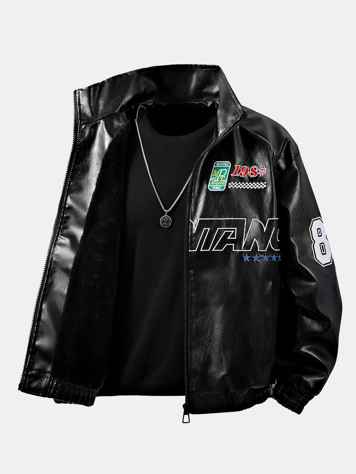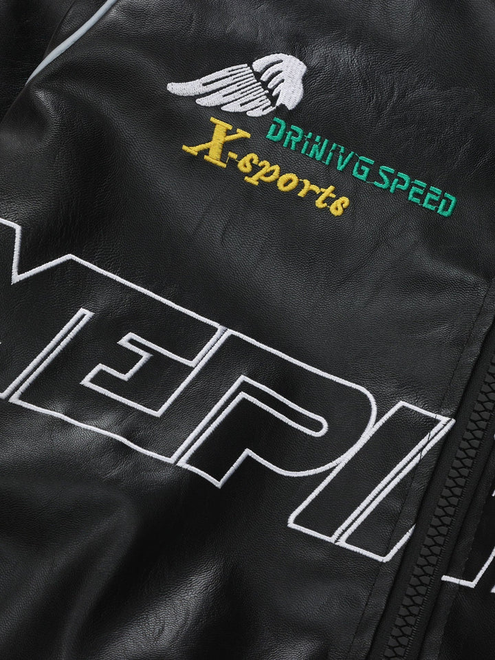 Veste de Course en Cuir avec Broderie et Doublure en Fleece